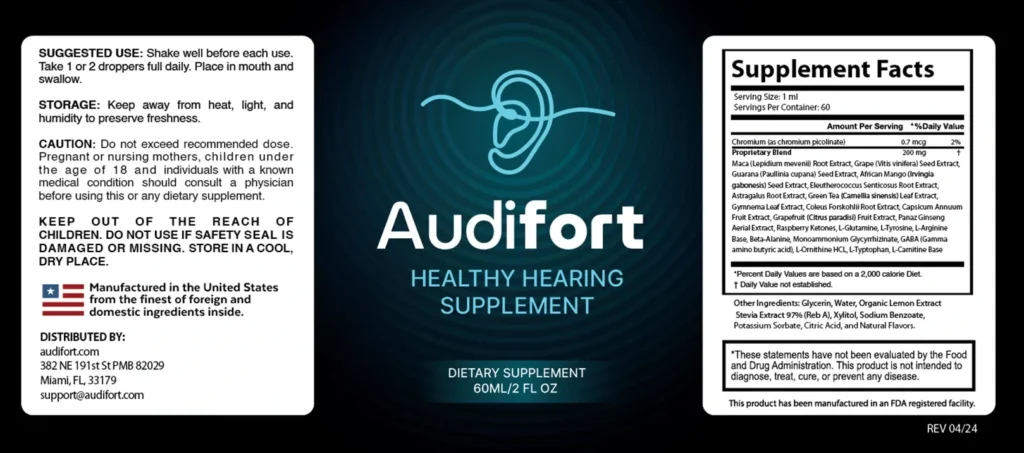 Audifort is formulated with natural ingredients that have been carefully selected for their safety and efficacy. Each component is sourced from trusted suppliers and undergoes strict quality control to ensure purity and the absence of harmful contaminants. According to the official product information, Audifort is manufactured in FDA-approved facilities that follow sterile and rigorous production standards.